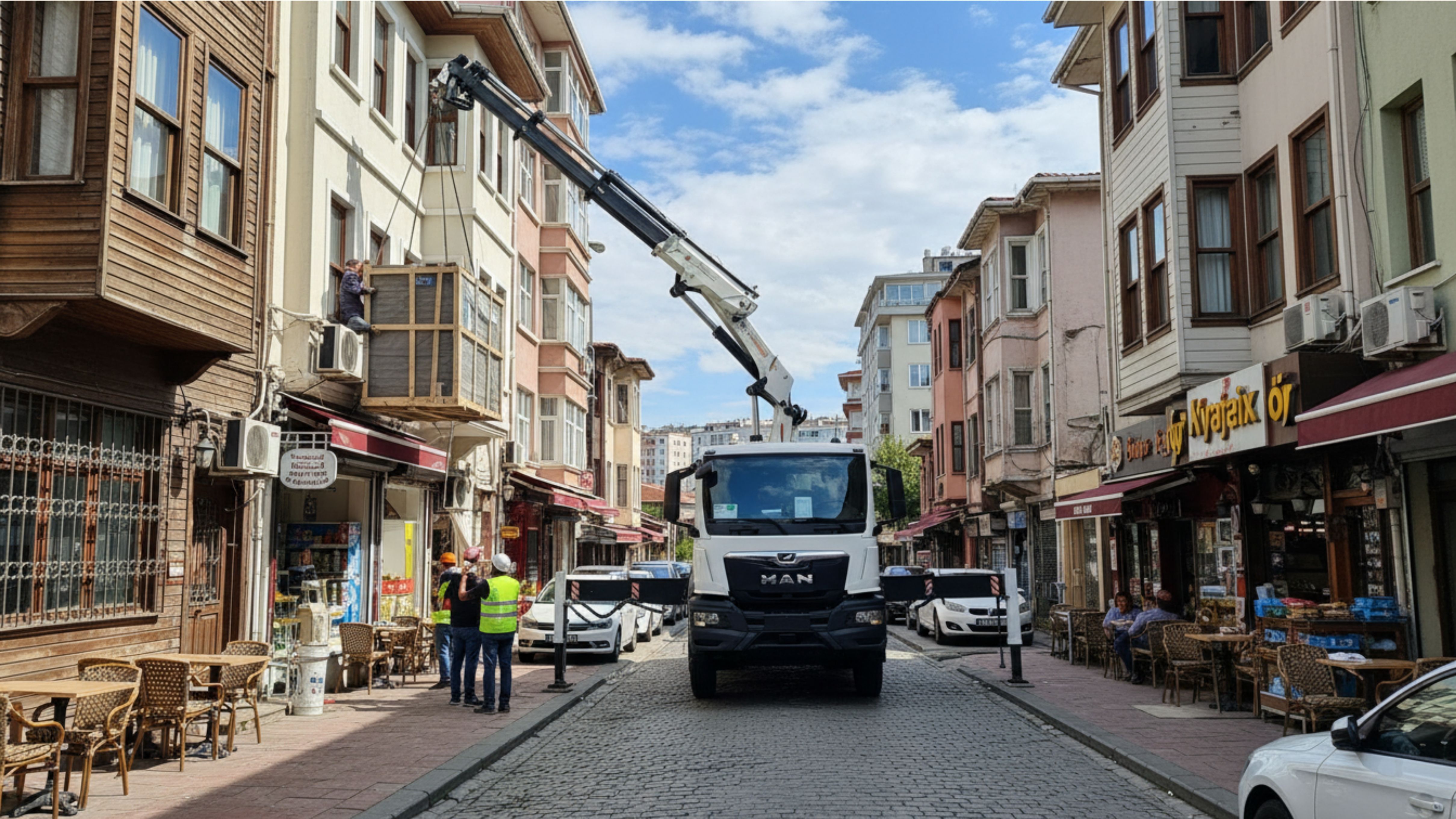 Balkondan Nakliye: Bina asansörünün yetersiz olduğu veya merdivenlerin dar olduğu durumlarda; ev eşyalarınızı (koltuk, beyaz eşya, piyano) Mobil Vinç veya Asansörlü Vinç ile doğrudan balkondan içeri alıyoruz.