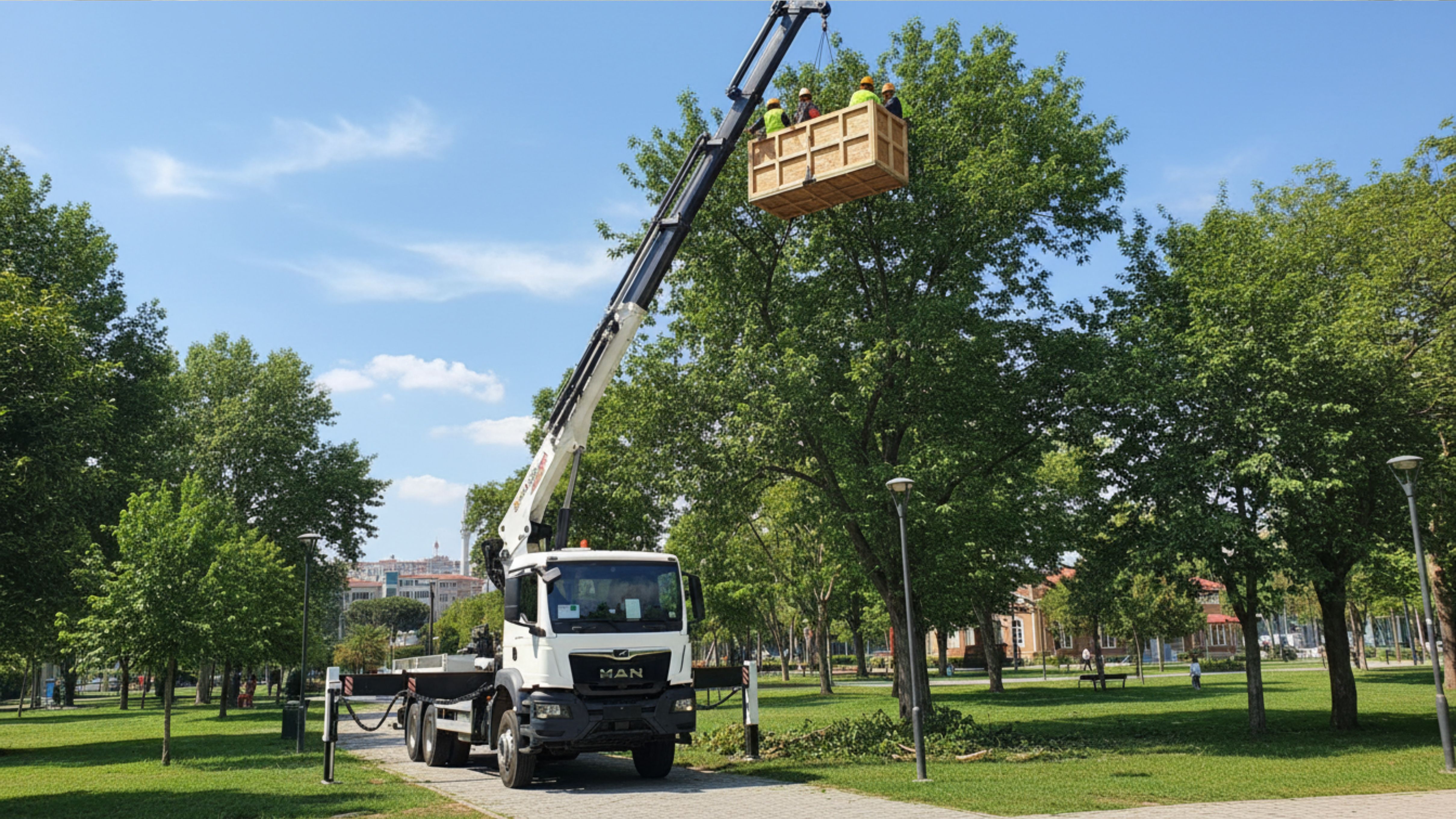 Ağaç Budama: Site bahçelerindeki veya park çevresindeki asırlık ağaçların bakımı için personel yükseltici platformlar.