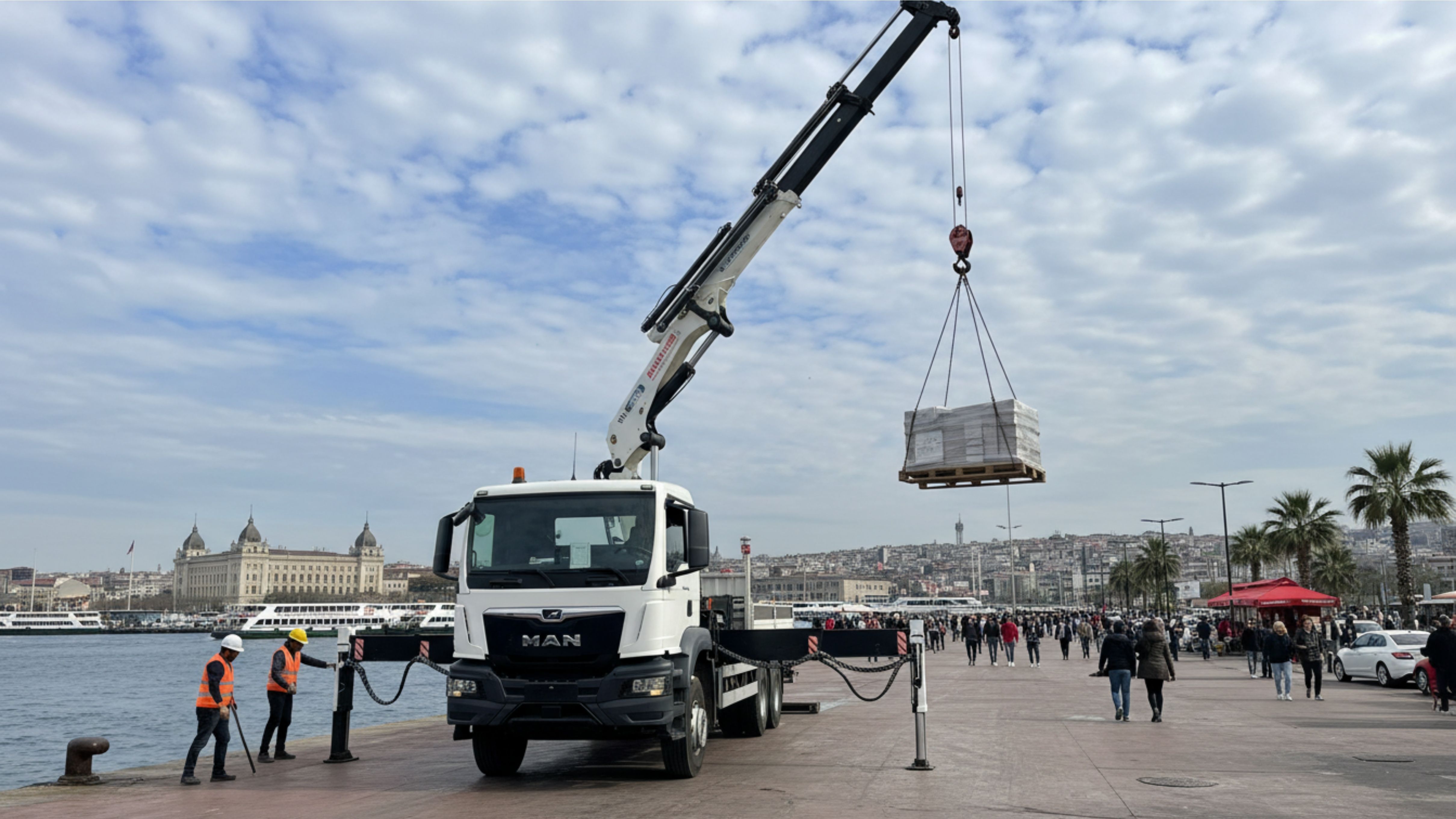 İskele Bakım Desteği: Vapur iskelelerinin bakım onarım çalışmalarında, ağır parçaların kaldırılması veya deniz tarafındaki zorlu noktalara erişim için vinç desteği.